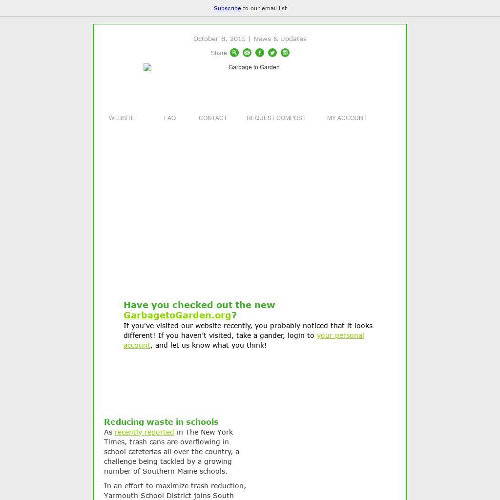 As recently reported in The New York Times, trash cans are overflowing in school cafeterias all over the country, a challenge being tackled by a growing number of Southern Maine schools. In an effort to maximize trash reduction, Yarmouth School District joins South Portland, Scarborough, Old Orchard Beach and Falmouth School Districts, in minimizing waste by up to 90% by recycling and composting food scraps in school cafeterias with implementation and educational support from Garbage to Garden.