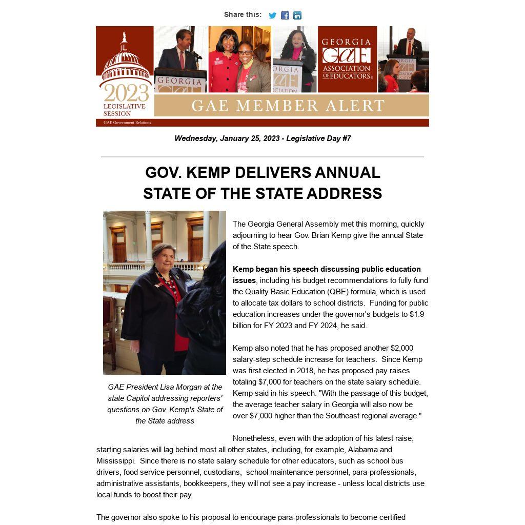 As the legislative session moves forward, you will want to follow up with your legislators on issues like TKES/LKES reform, public education funding, educator recruitment and retention, and many other issues that will come up, and GAE will provide you the information you need to do so.