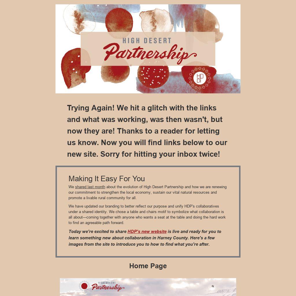 shared last month about the evolution of High Desert Partnership and how we are renewing our commitment to strengthen the local economy, sustain our vital natural resources and promote a livable rural community for all.