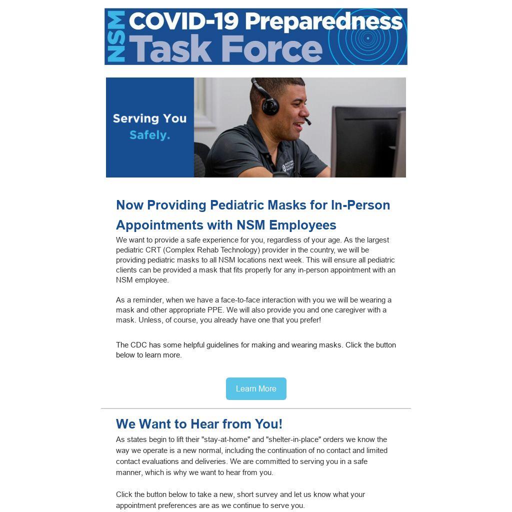 As states begin to lift their "stay-at-home" and "shelter-in-place" orders we know the way we operate is a new normal, including the continuation of no contact and limited contact evaluations and deliveries. We are committed to serving you in a safe manner, which is why we want to hear from you.
