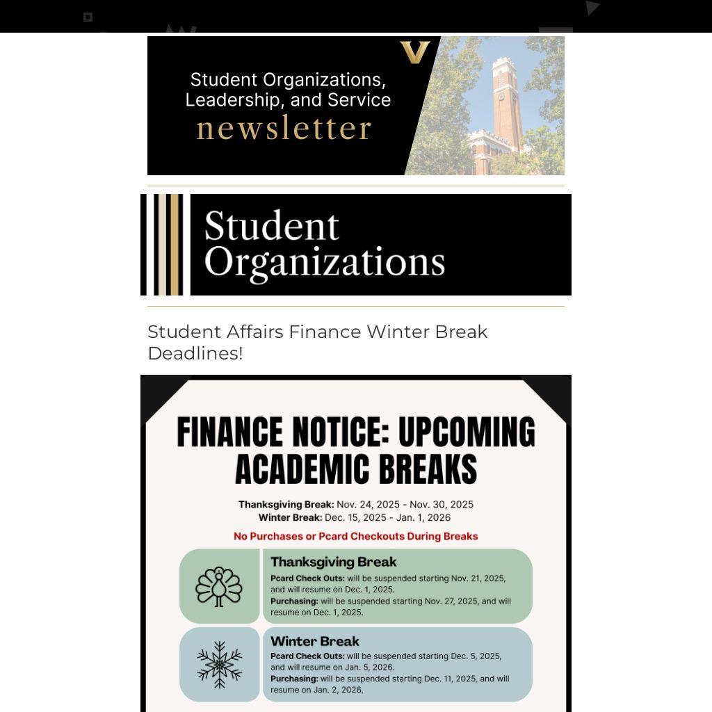 Fill out our "Student Organization Feature" form below if you want to see your organization highlighted in our next newsletter!