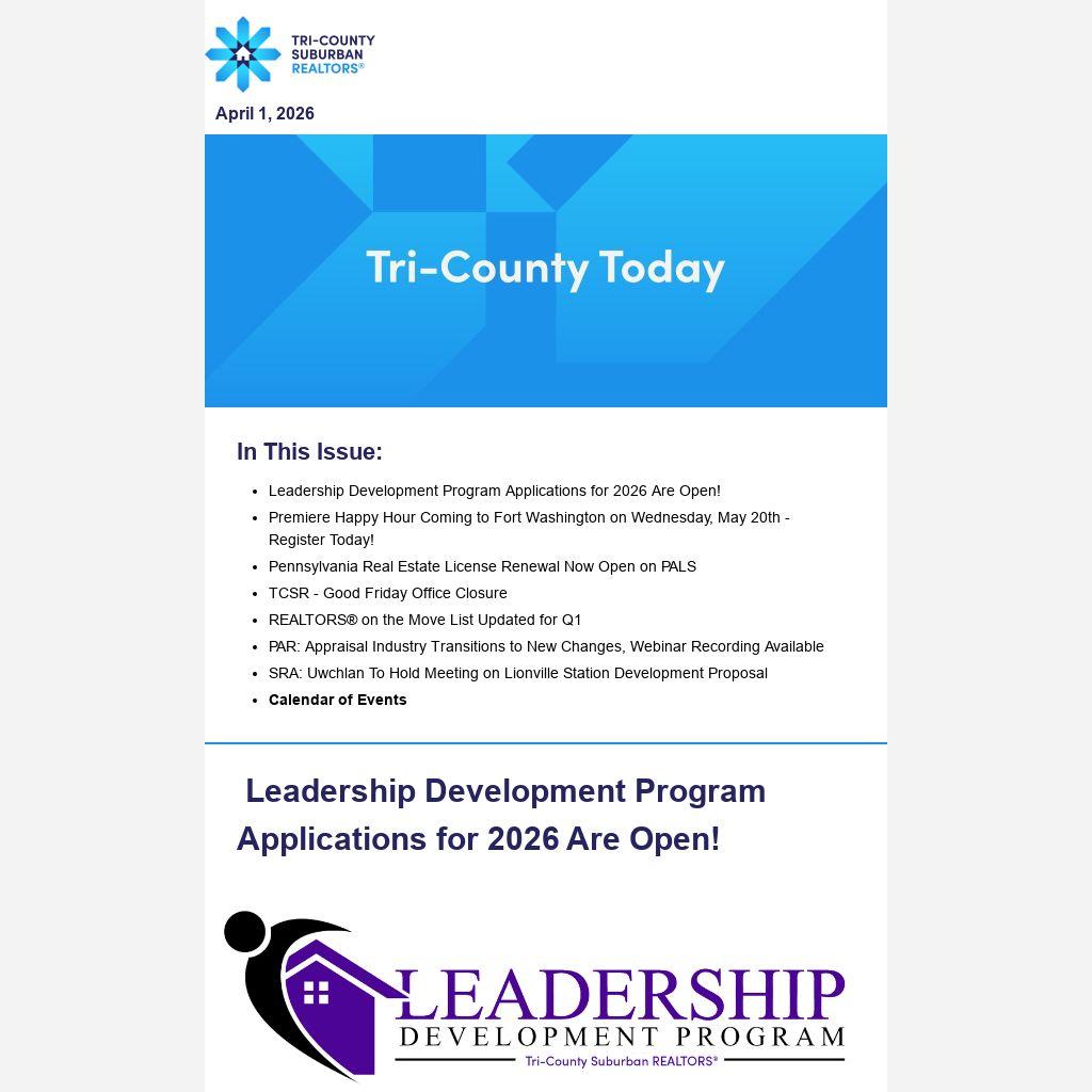 Tri-County Suburban REALTORS® is now accepting applications for the 2026 Leadership Development Program (LDP), an initiative designed to cultivate the next generation of real estate leaders. This immersive experience provides REALTOR® members with the tools, training, and confidence to take on influential roles within the industry and their community.