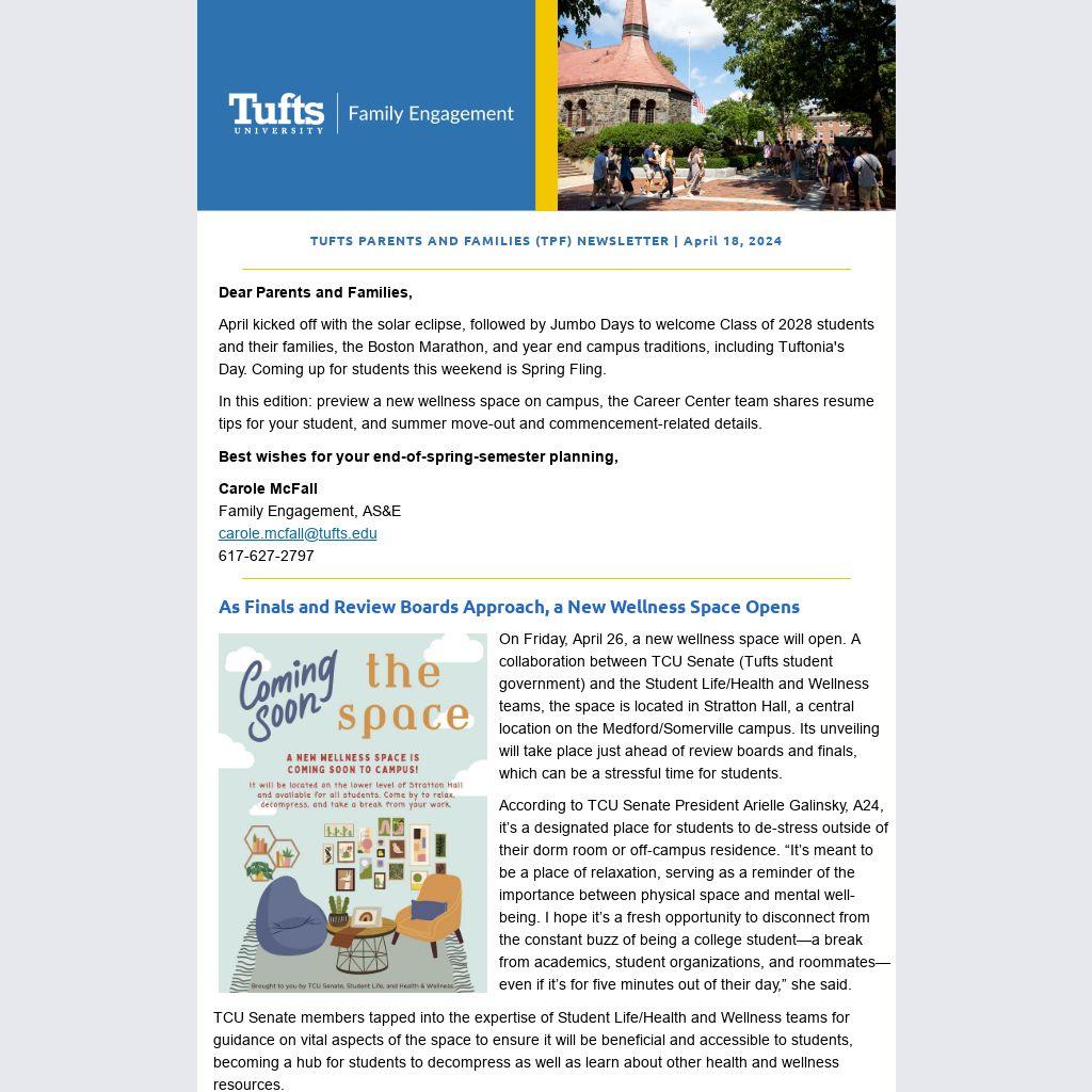 TUFTS PARENTS AND FAMILIES (TPF) NEWSLETTER | April 18, 2024