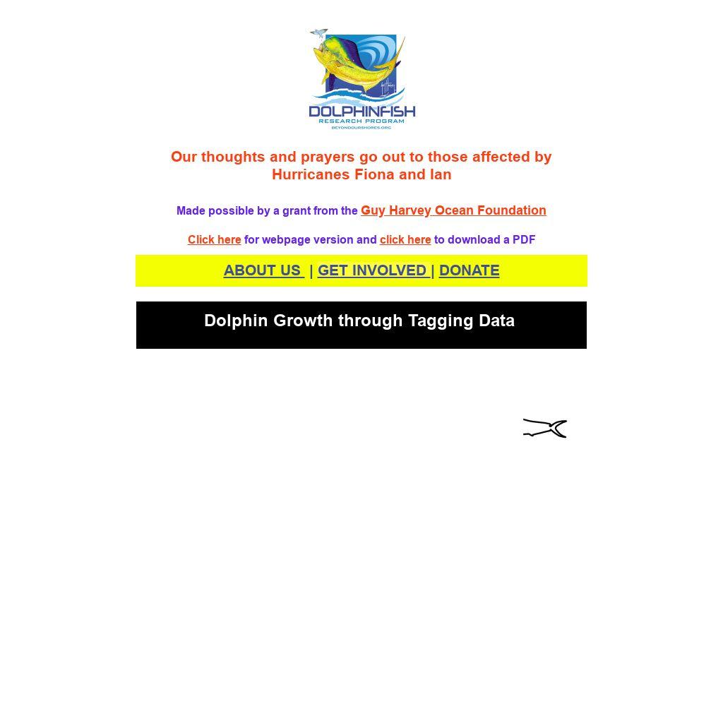 Perrichon et al. (2019) documented the developmental dynamics of dolphinfish and noted at ~13 cm FL, or ~5" FL, dolphin begin the juvenile phase 55 days post-hatch. This puts a fish of that size just shy of two months old. Preliminary results from a comprehensive analysis of growth observed through our tagging data estimate dolphin can grow up to 1" per week. Therefore, we estimate that a 6" FL juvenile dolphin is two months old and a 14" FL fish at a late 3- or