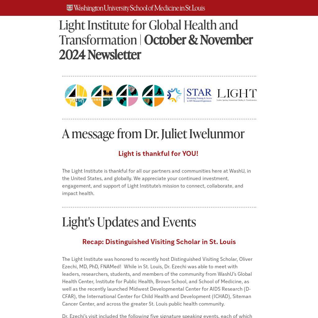 Light Institute for Global Health and Transformation | October & November 2024 Newsletter |