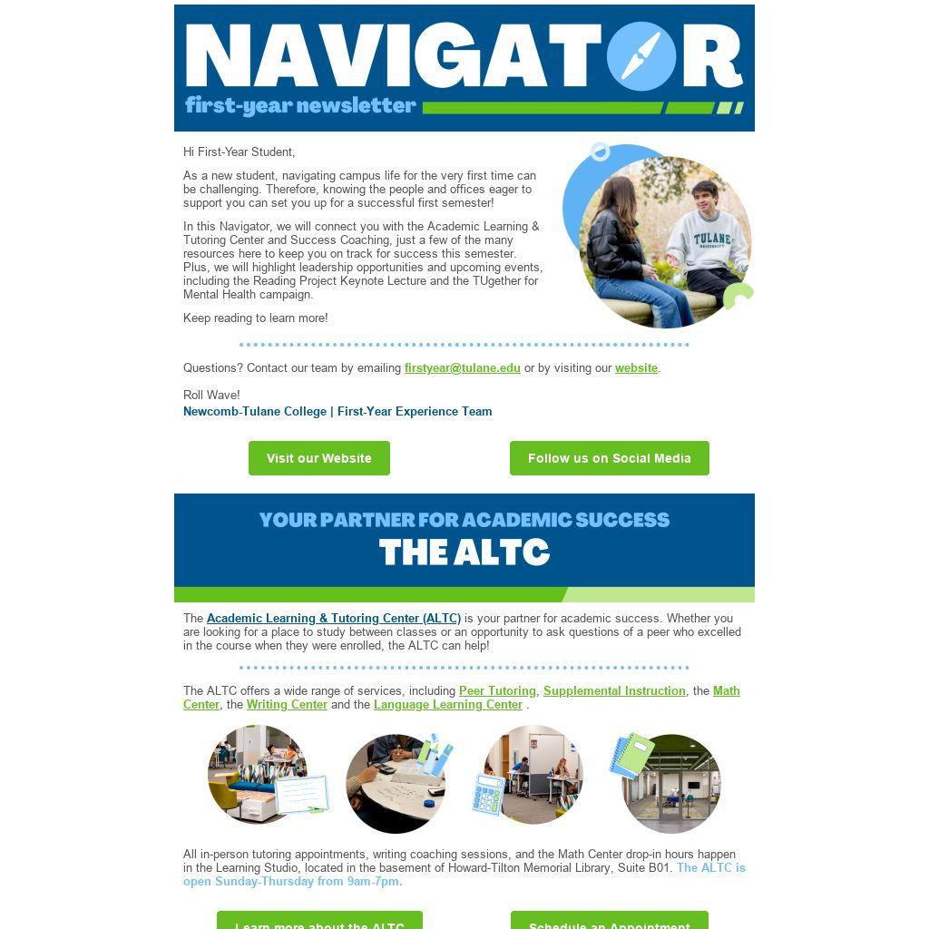 In this Navigator, we will connect you with the Academic Learning & Tutoring Center and Success Coaching, just a few of the many resources here to keep you on track for success this semester. Plus, we will highlight leadership opportunities and upcoming events, including the Reading Project Keynote Lecture and the TUgether for Mental Health campaign.