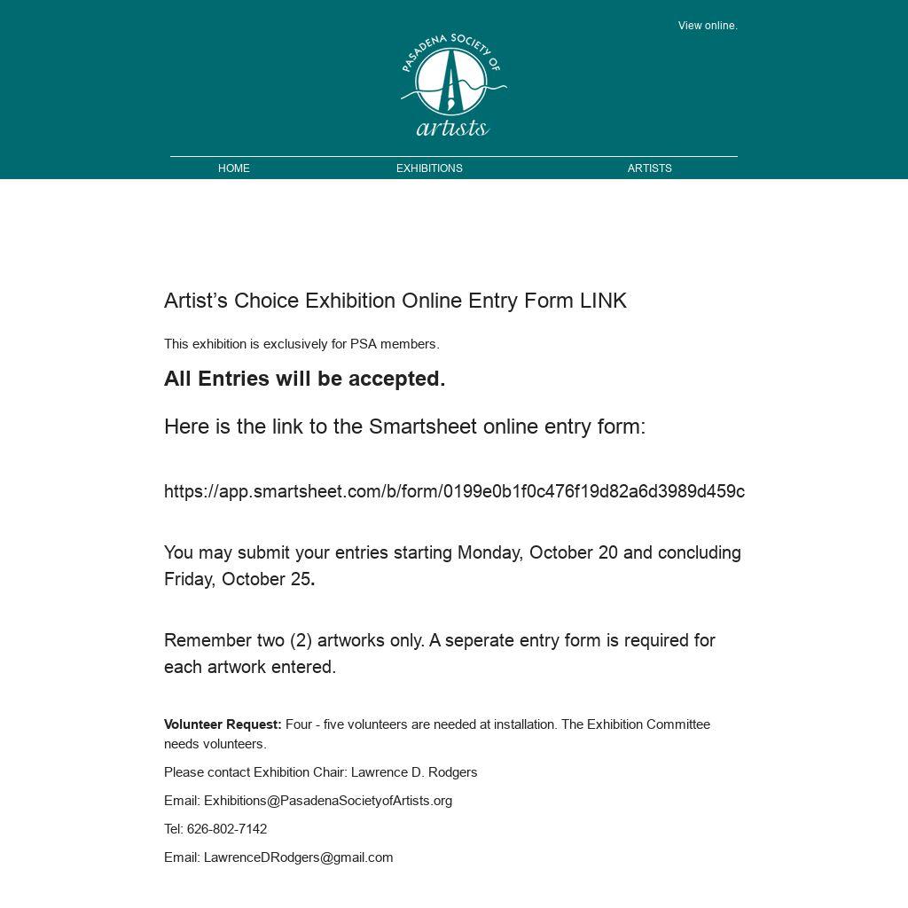 Email: Exhibitions@PasadenaSocietyofArtists.org