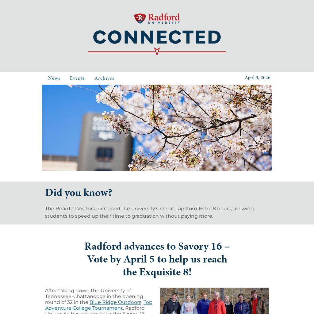 This week’s news at Radford |