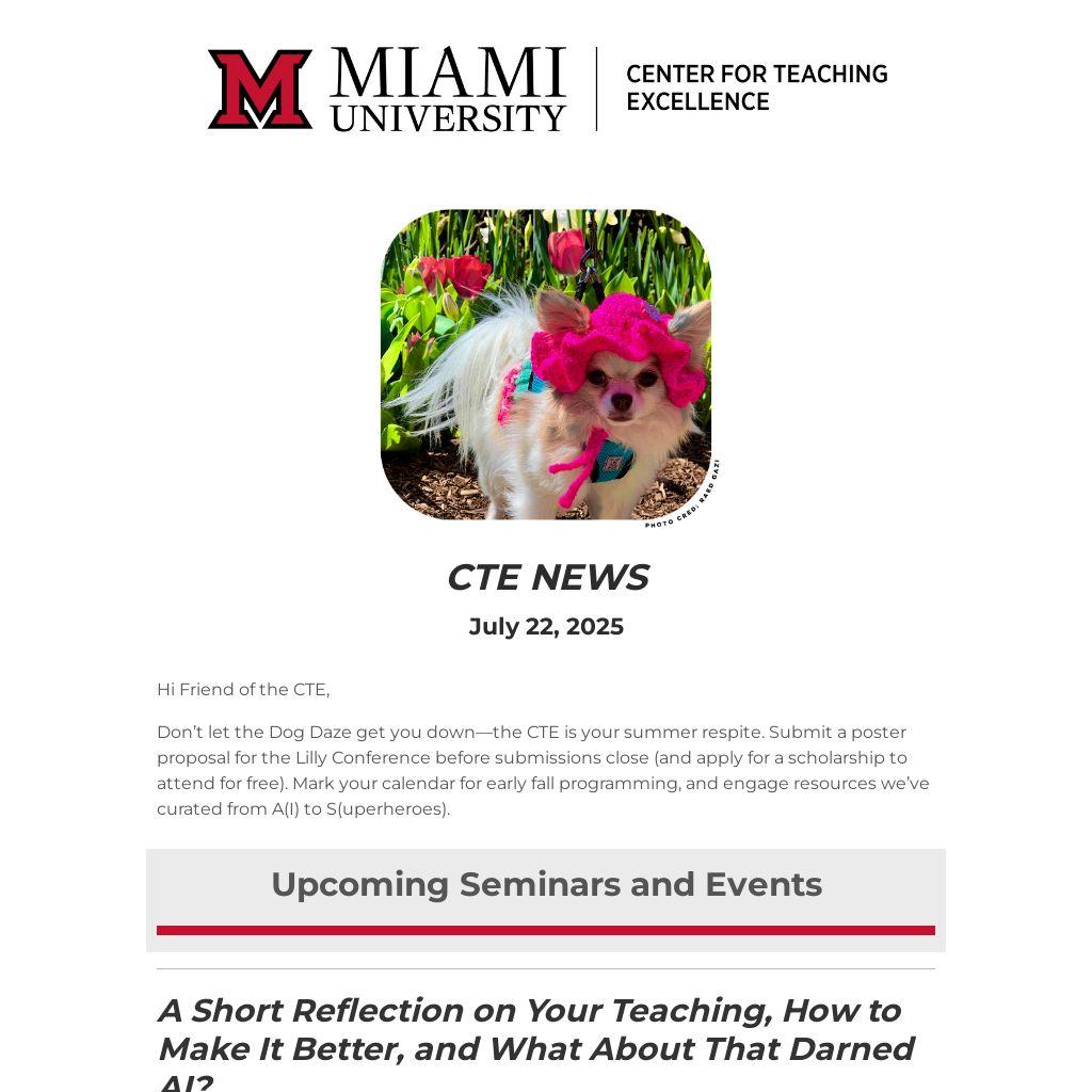 Don’t let the Dog Daze get you down—the CTE is your summer respite. Submit a poster proposal for the Lilly Conference before submissions close (and apply for a scholarship to attend for free). Mark your calendar for early fall programming, and engage resources we’ve curated from A(I) to S(uperheroes).