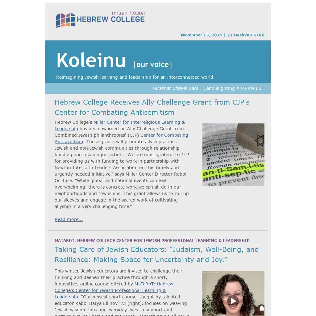 Hebrew College Receives Ally Challenge Grant from CJP's Center for Combating Antisemitism