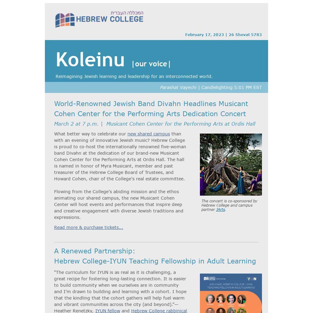 Dedication Concert Featuring Divahn, Led By Galeet Dardashti Dedication Concert for the Musicant Cohen Center for the Performing Arts at Ordis Hall on Hebrew College’s new shared campus.
