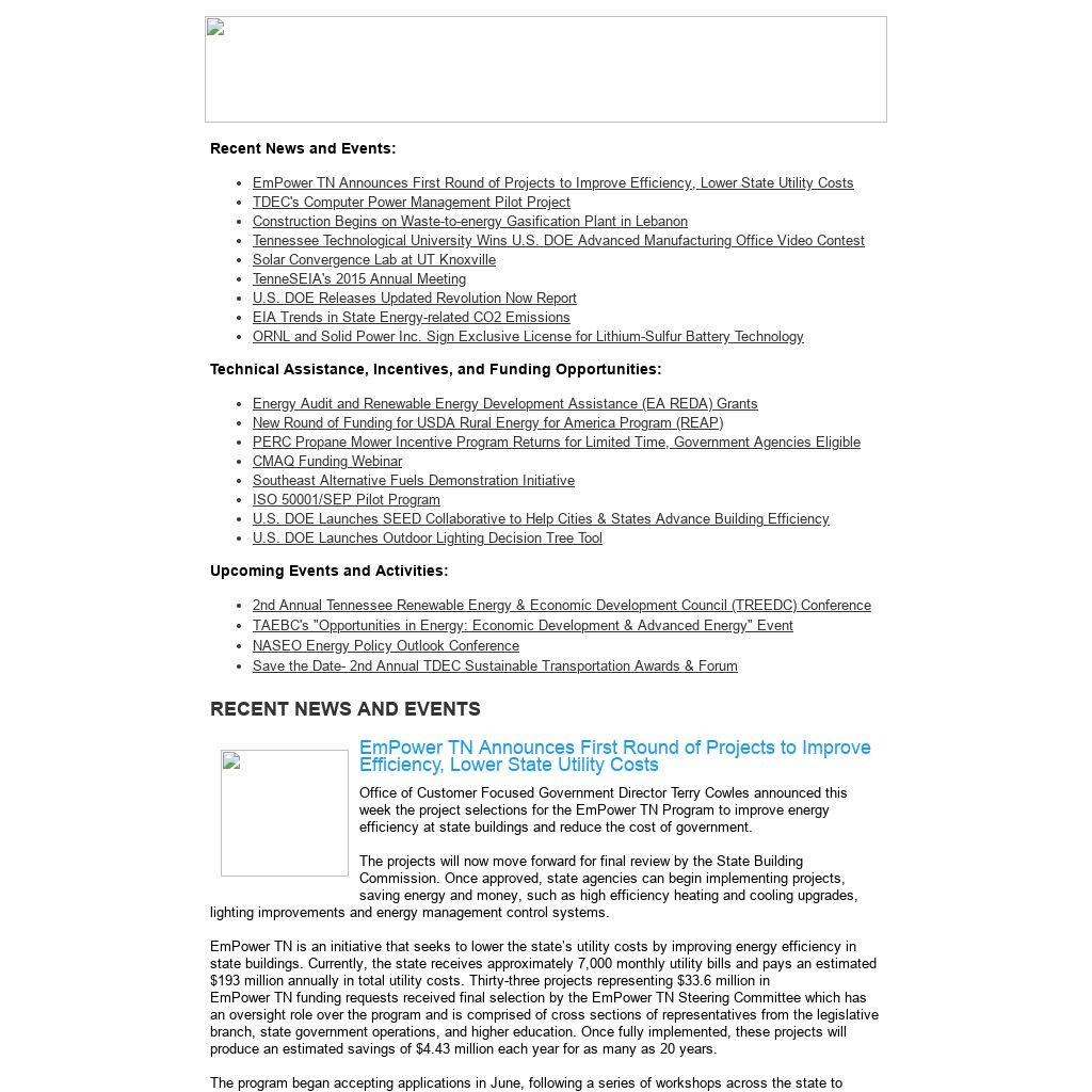 | EmPower TN Announces First Round of Projects to Improve Efficiency, Lower State Utility Costs