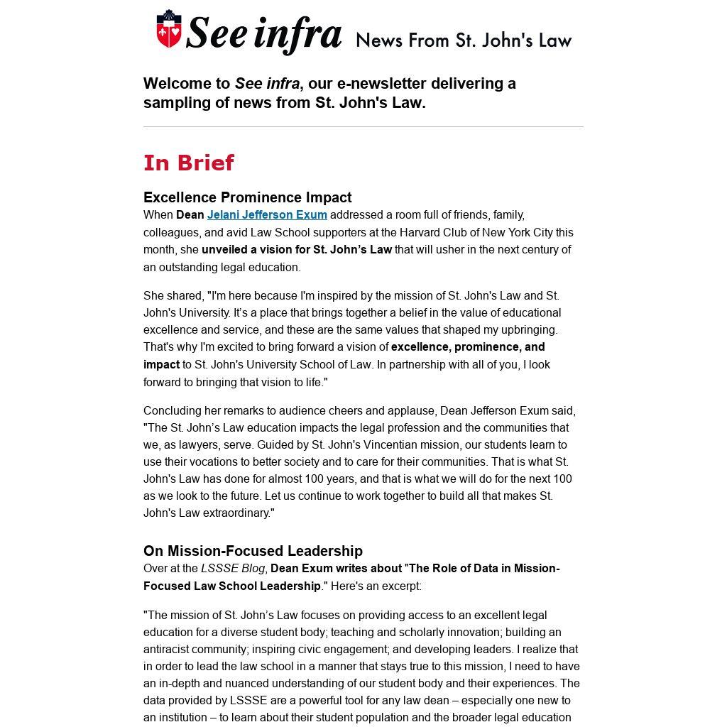 Welcome to See infra, our e-newsletter delivering a sampling of news from St. John's Law.