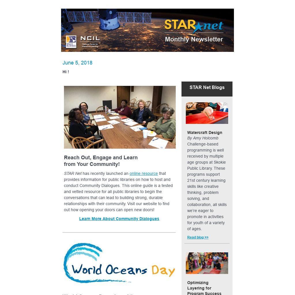 The STAR Library Network (STAR Net) is a hands-on learning network for libraries and their communities across the country. STAR Net focuses on helping library professionals build their STEM skills by providing “science-technology activities and resources” (STAR) and training to use those resources. Plus, engage public audiences nationwide in informal and lifelong learning with the excitement of exploration and discovery through new NASA@ My Library and Project BUILD resources!