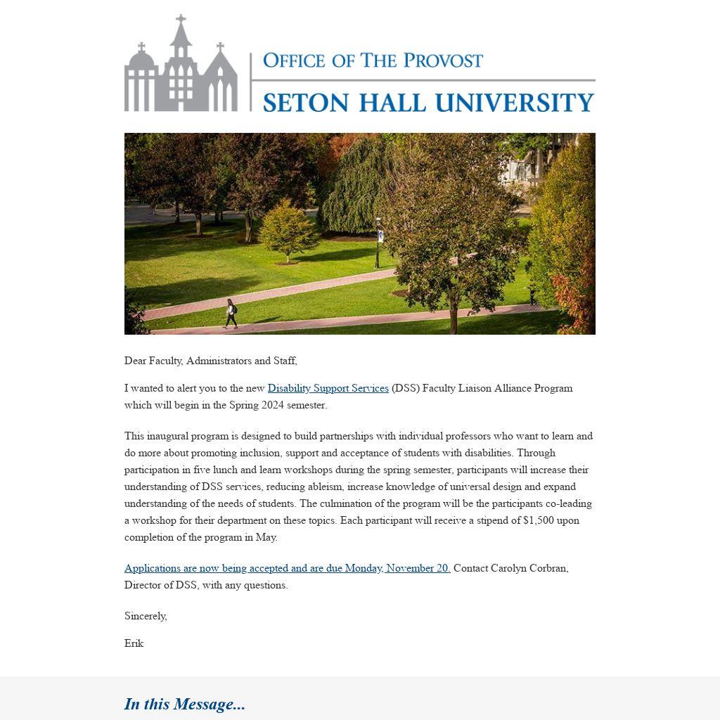 I wanted to alert you to the new Disability Support Services (DSS) Faculty Liaison Alliance Program which will begin in the Spring 2024 semester.