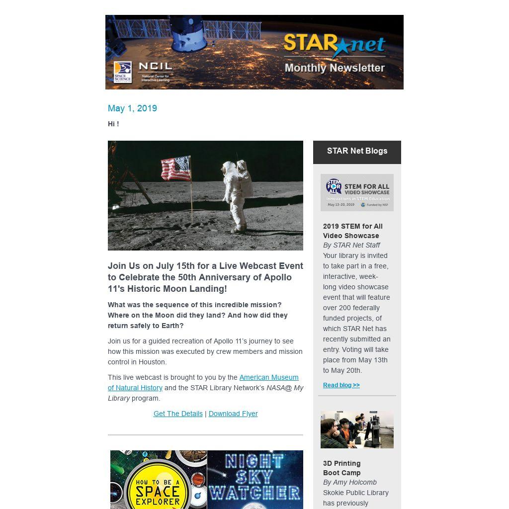 The STAR Library Network (STAR Net) is a hands-on learning network for libraries and their communities across the country. STAR Net focuses on helping library professionals build their STEM skills by providing “science-technology activities and resources” (STAR) and training to use those resources. Plus, engage public audiences nationwide in informal and lifelong learning with the excitement of exploration and discovery through new NASA@ My Library and Project BUILD resources!