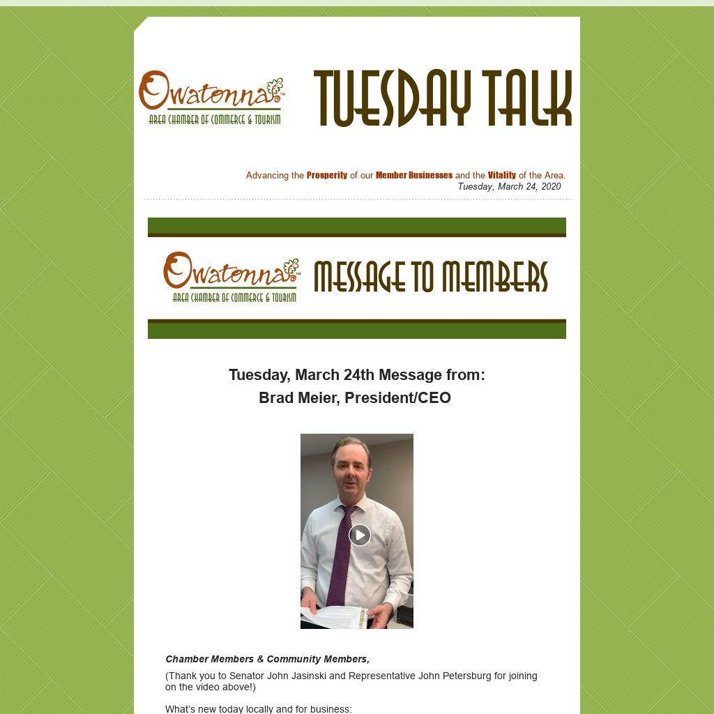 - We just pushed out this item it’s a support local-every industry. 24 creative ideas to support religious to healthcare to arts and retail. Also wanted to show you where to find it. All on our Owatonna.org