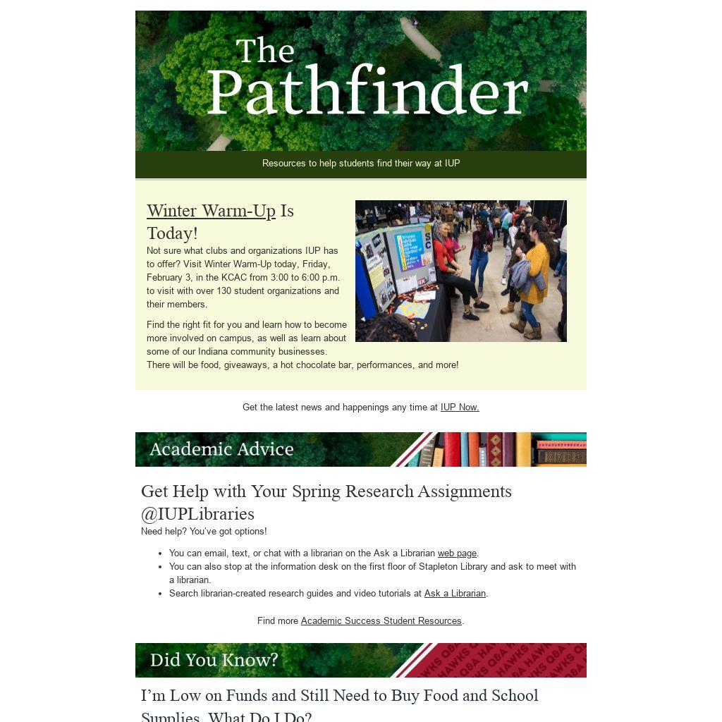 Not sure what clubs and organizations IUP has to offer? Visit Winter Warm-Up today, Friday, February 3, in the KCAC from 3:00 to 6:00 p.m. to visit with over 130 student organizations and their members.