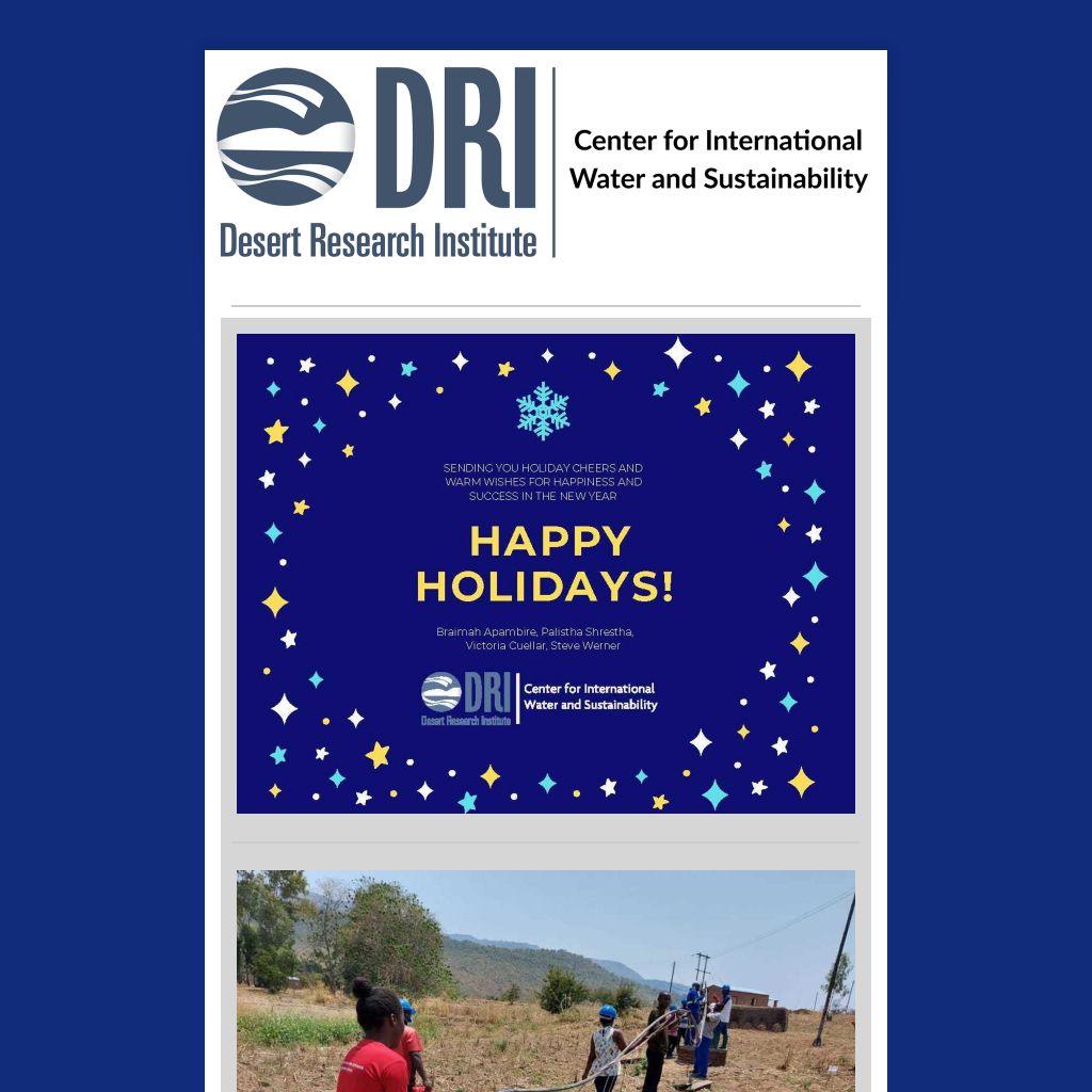 As we move into the holidays and begin a new year, we want to thank you for your financial support and collaborations with CIWAS. On behalf of everyone on the CIWAS team - Braimah, Victoria, Steve, and Palistha, and supporting DRI faculty, best wishes to you and your families. Have a wonderful and safe holiday season and Happy New Year 2022!