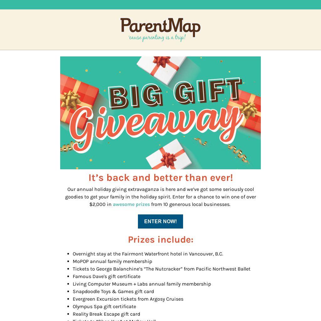 Our annual holiday giving extravaganza is here and weâve got some seriously cool goodies to get your family in the holiday spirit. Enter for a chance to win one of over $2,000 in awesome prizes from 10 generous local businesses.Â