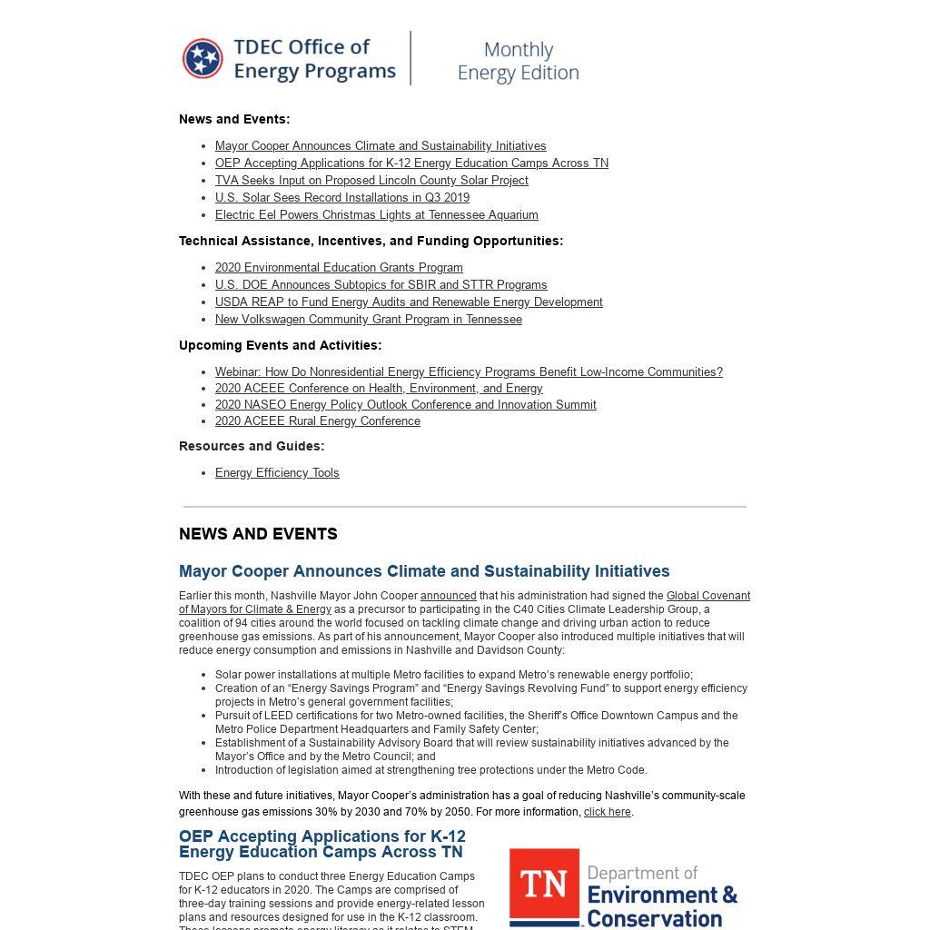 Earlier this month, Nashville Mayor John Cooper announced that his administration had signed the Global Covenant of Mayors for Climate & Energy as a precursor to participating in the C40 Cities Climate Leadership Group, a coalition of 94 cities around the world focused on tackling climate change and driving urban action to reduce greenhouse gas emissions. As part of his announcement, Mayor Cooper also introduced multiple initiatives that will reduce energy consumption and emissions in Nashville and Davidson County:
