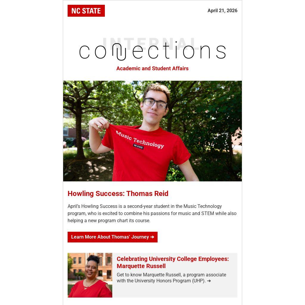 - Set for April 28 and 29, the Office of Undergraduate Research invites the NC State community to celebrate the research accomplishments of undergraduate students from across campus at the Undergraduate Research and Creativity Symposium.