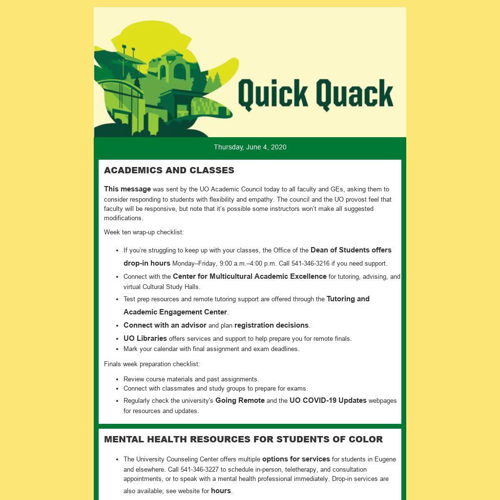 This message was sent by the UO Academic Council today to all faculty and GEs, asking them to consider responding to students with flexibility and empathy. The council and the UO provost feel that faculty will be responsive, but note that it’s possible some instructors won’t make all suggested modifications.