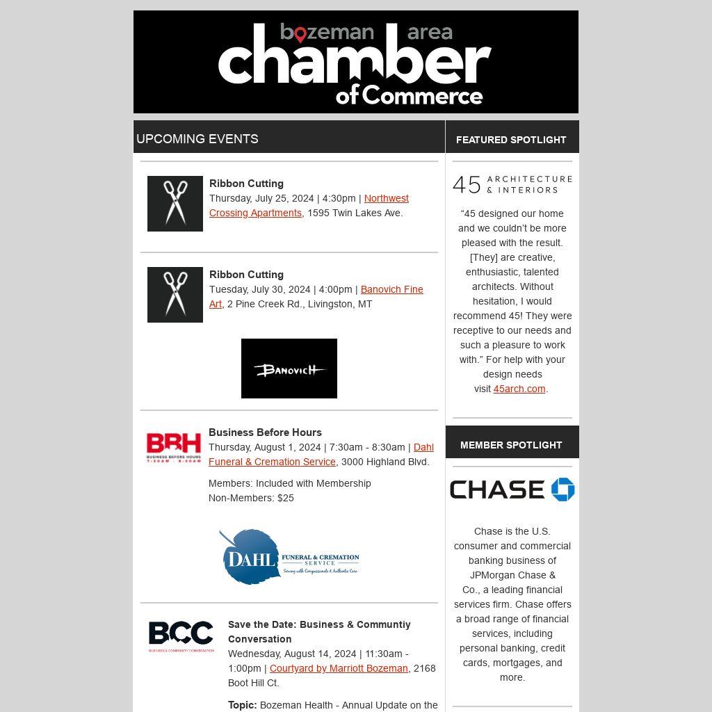 Save the Date: Business Lunch Seminar Wednesday, August 28, 2024 | 11:30am - 1:00pm | Bozeman Area Chamber of Commerce, 2000 Commerce Way