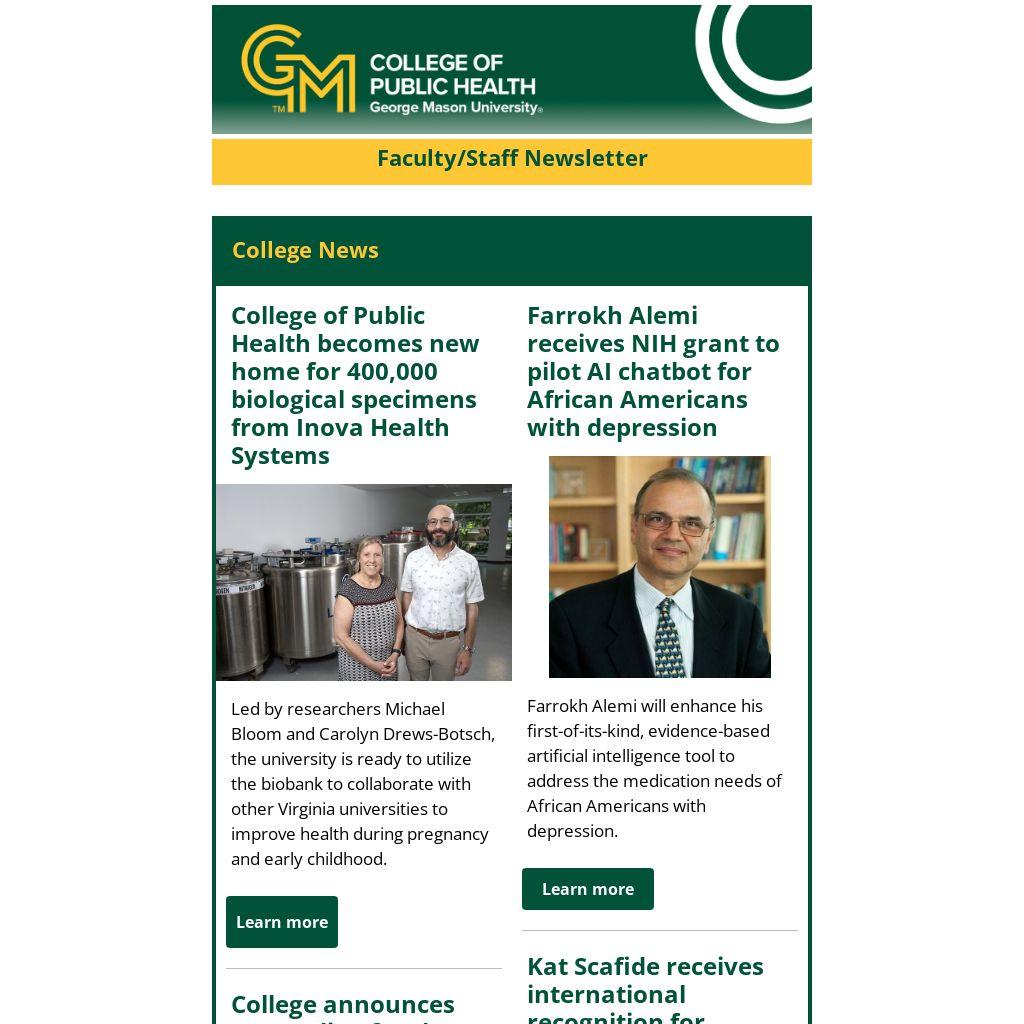 College of Public Health becomes new home for 400,000 biological specimens from Inova Health Systems |