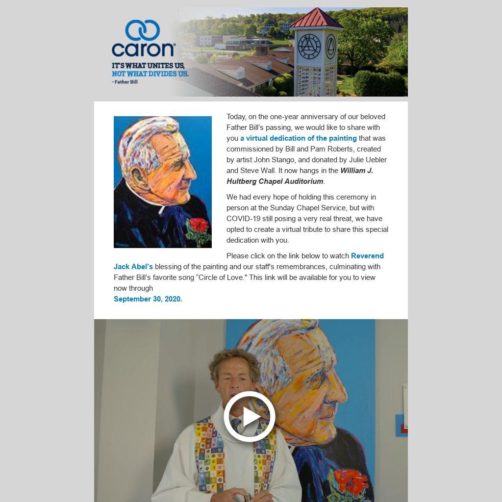 Please click on the link below to watch Reverend Jack Abel’s blessing of the painting and our staff's remembrances, culminating with Father Bill’s favorite song “Circle of Love." This link will be available for you to view now through