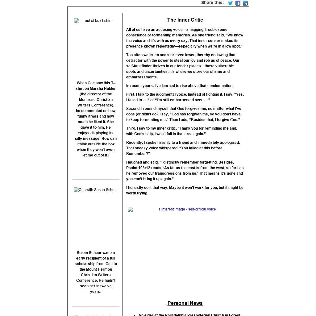 Third, I say to my inner critic, “Thank you for reminding me and, with God’s help, I won’t fail in that area again.”