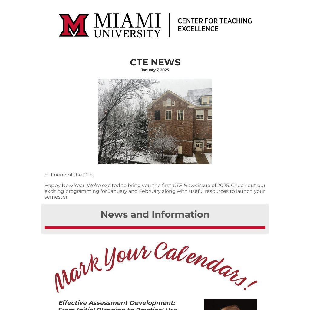 Happy New Year! We’re excited to bring you the first CTE News issue of 2025. Check out our exciting programming for January and February along with useful resources to launch your semester.