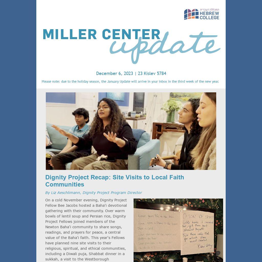 The Miller Center was established in 2016 in honor of Betty Ann Greenbaum Miller (of blessed memory), MAJS’05. Our mission is to provide current and future religious and ethical leaders with the knowledge and skills to serve in a religiously diverse society.