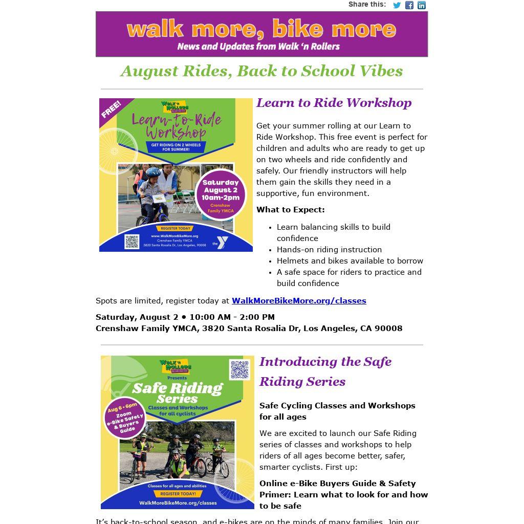 It’s back-to-school season, and e-bikes are on the minds of many families. Join our free online discussion designed to help parents and riders better understand e-bike safety, current laws, rules of the road and best practices for commuting.