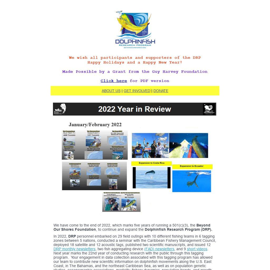 We have come to the end of 2022, which marks five years of running a 501(c)(3), the Beyond Our Shores Foundation, to continue and expand the Dolphinfish Research Program (DRP).
