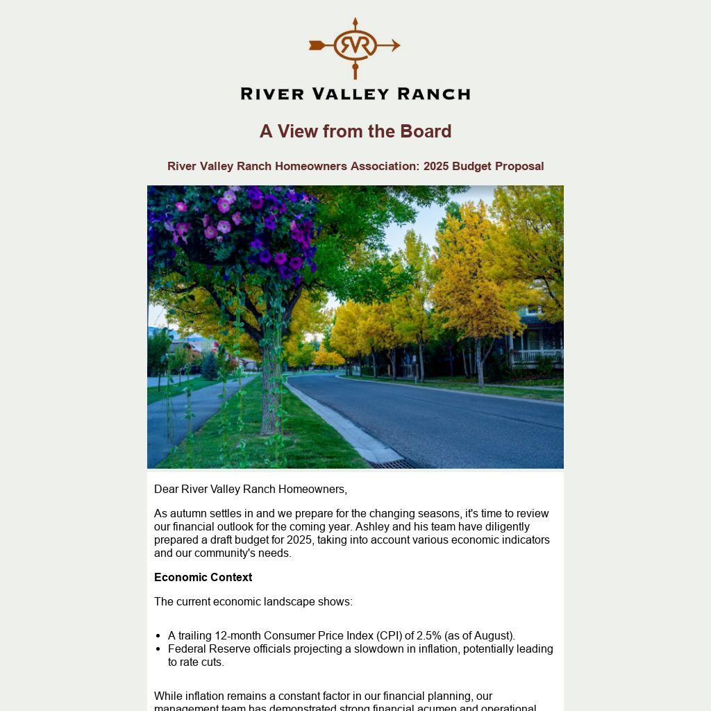River Valley Ranch Homeowners Association: 2025 Budget Proposal