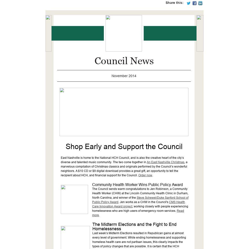 East Nashville is home to the National HCH Council, and is also the creative heart of the city’s diverse and talented music community. The two come together in An East Nashville Christmas, a marvelous compilation of Christmas classics and originals performed by the Council’s wonderful neighbors. A $10 CD or $9 digital download provides a great gift, an opportunity to tell the recipient about HCH, and financial support for the Council. Order now.