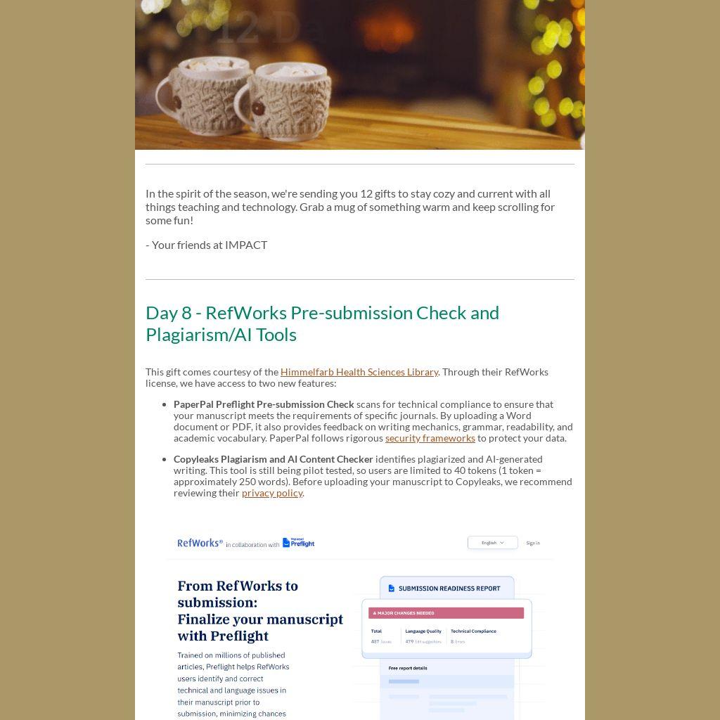 Day 8 - RefWorks Pre-submission Check and Plagiarism/AI Tools |