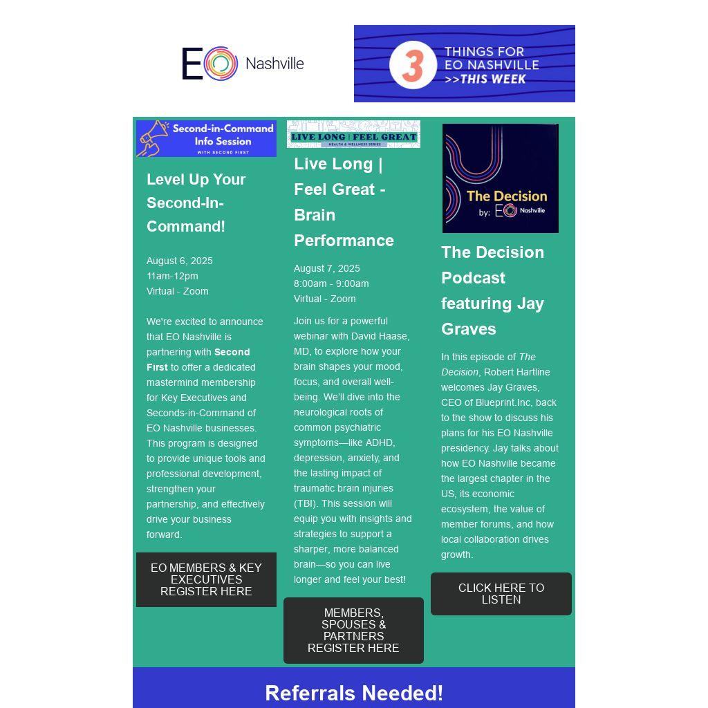 In this episode of The Decision, Robert Hartline welcomes Jay Graves, CEO of Blueprint.Inc, back to the show to discuss his plans for his EO Nashville presidency. Jay talks about how EO Nashville became the largest chapter in the US, its economic ecosystem, the value of member forums, and how local collaboration drives growth.