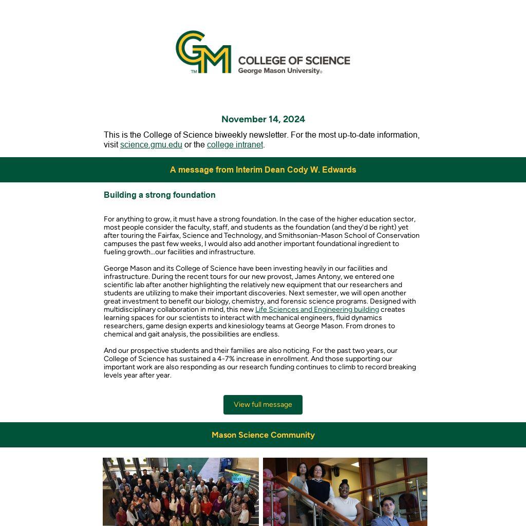 And our prospective students and their families are also noticing. For the past two years, our College of Science has sustained a 4-7% increase in enrollment. And those supporting our important work are also responding as our research funding continues to climb to record breaking levels year after year.