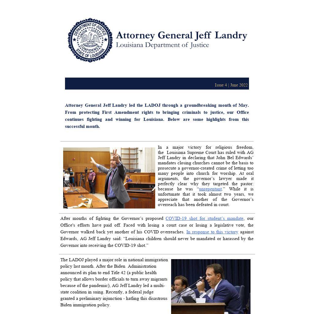AG Jeff Landry and his colleague in Missouri recently filed suit against Joe Biden and other top-ranking government officials for allegedly working with social media giants such as Meta, Twitter, and Youtube to censor and suppress free speech – including truthful information – related to COVID-19, election integrity, and other topics, under the guise of combating “misinformation.”