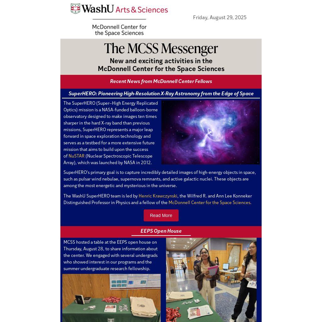 The WashU SuperHERO team is led by Henric Krawczynski, the Wilfred R. and Ann Lee Konneker Distinguished Professor in Physics and a fellow of the McDonnell Center for the Space Sciences.