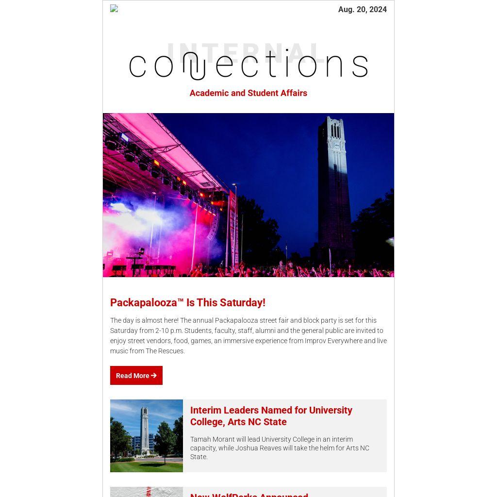 The day is almost here! The annual Packapalooza street fair and block party is set for this Saturday from 2-10 p.m. Students, faculty, staff, alumni and the general public are invited to enjoy street vendors, food, games, an immersive experience from Improv Everywhere and live music from The Rescues.