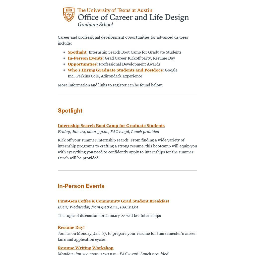 - Learn about graduate internships and fellowship opportunities at UT