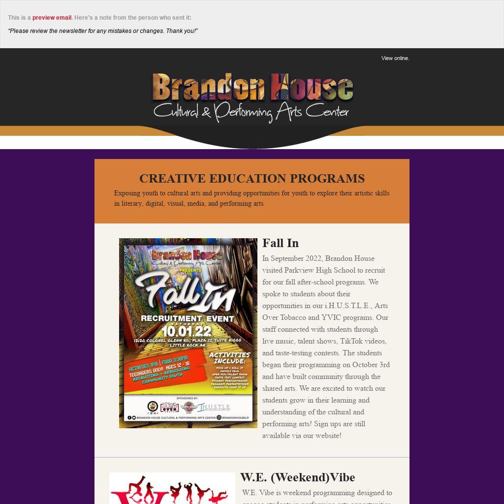 BH Productions, an umbrella of services under Brandon House Cultural & Performing Arts Center, is available to serve individuals’ and businesses’ production needs. Whether you are interested in assistance in film, photography, television, radio, music, and video, BH Productions’ experienced professionals are ready to take you to the next level.