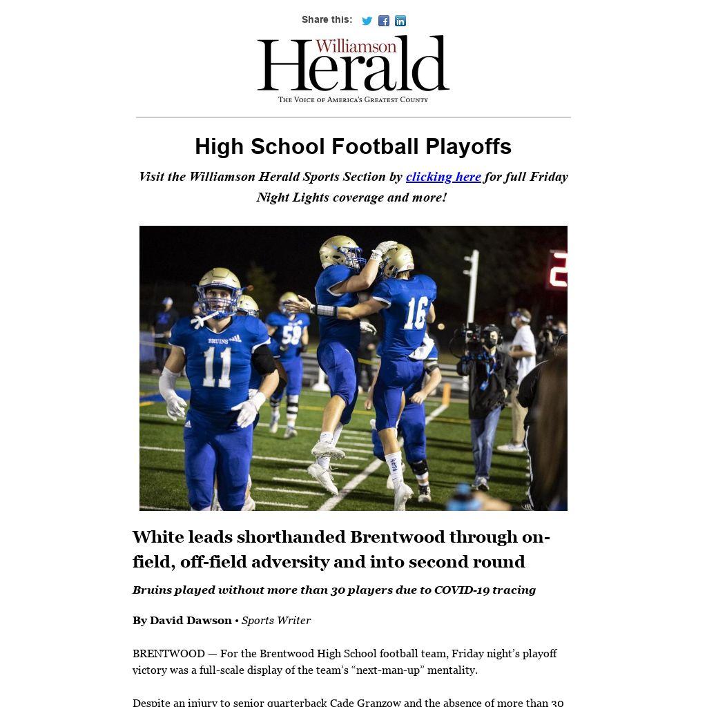 White leads shorthanded Brentwood through on-field, off-field adversity and into second round