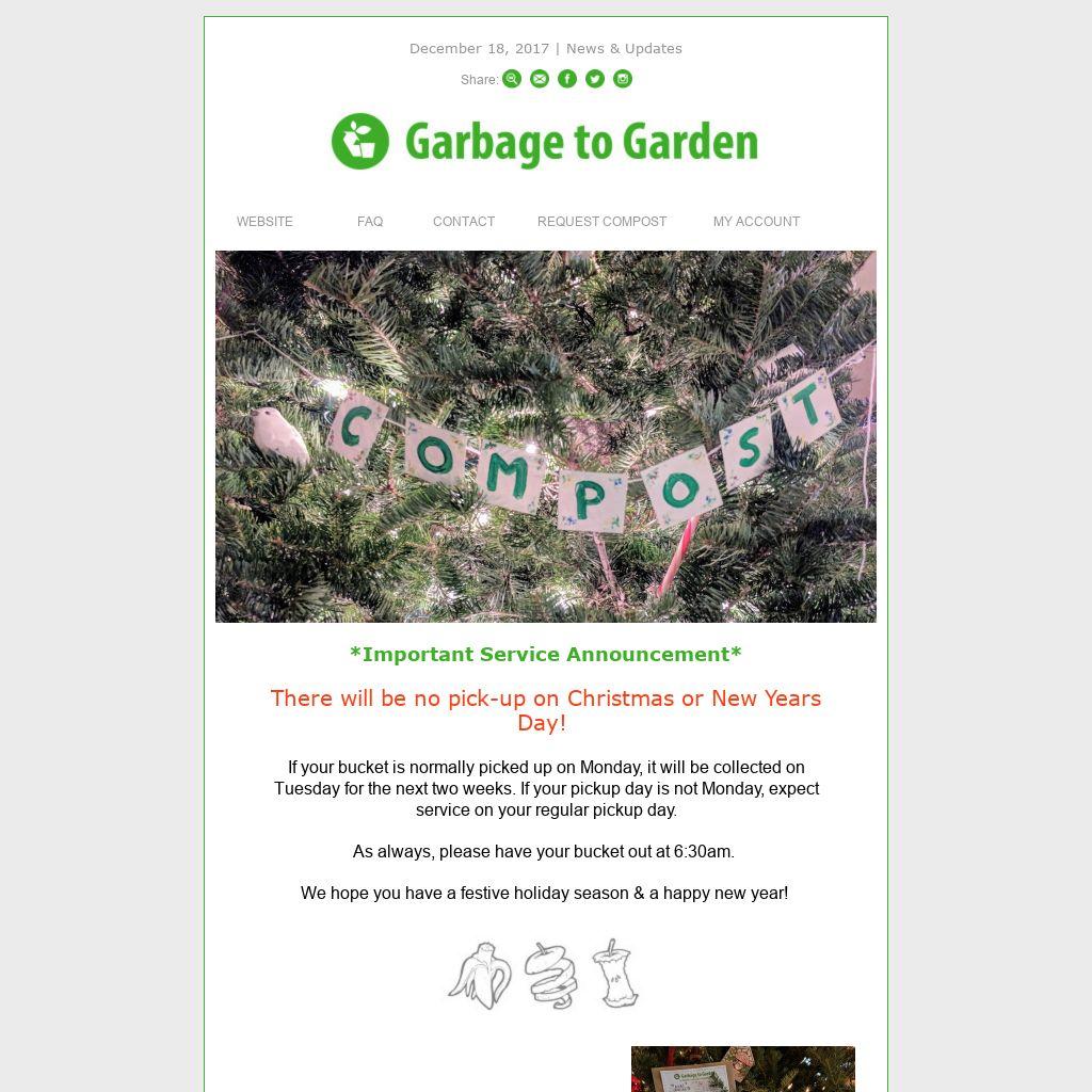 If your bucket is normally picked up on Monday, it will be collected on Tuesday for the next two weeks. If your pickup day is not Monday, expect service on your regular pickup day.