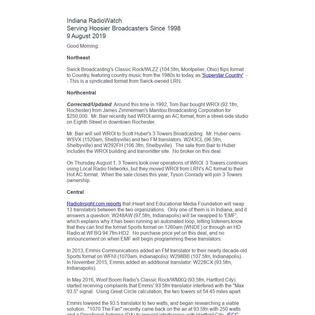 =============== Indiana RadioWatch ===============