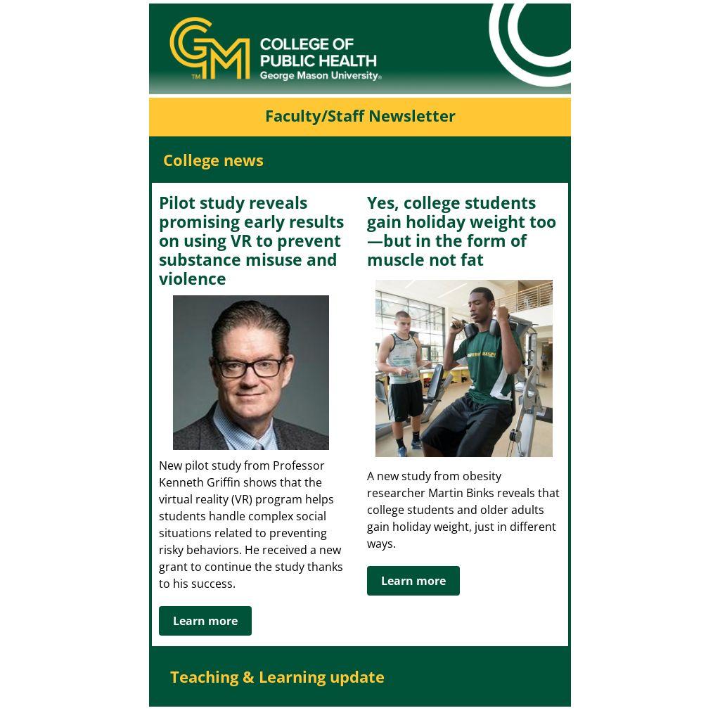 Did you know George Mason University is a member of the National Center for Faculty Development and Diversity (NCFDD)? This membership gives you access to a wealth of resources, including fantastic webinars, workshops, and the popular 14-Day Writing Challenge, which many of our CPH faculty have already completed.