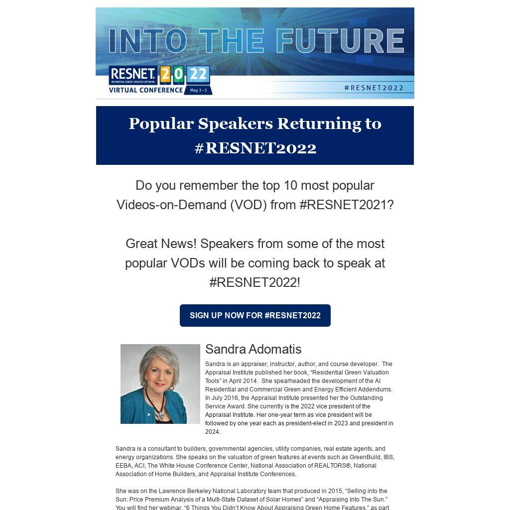 Great News! Speakers from some of the most popular VODs will be coming back to speak at #RESNET2022!